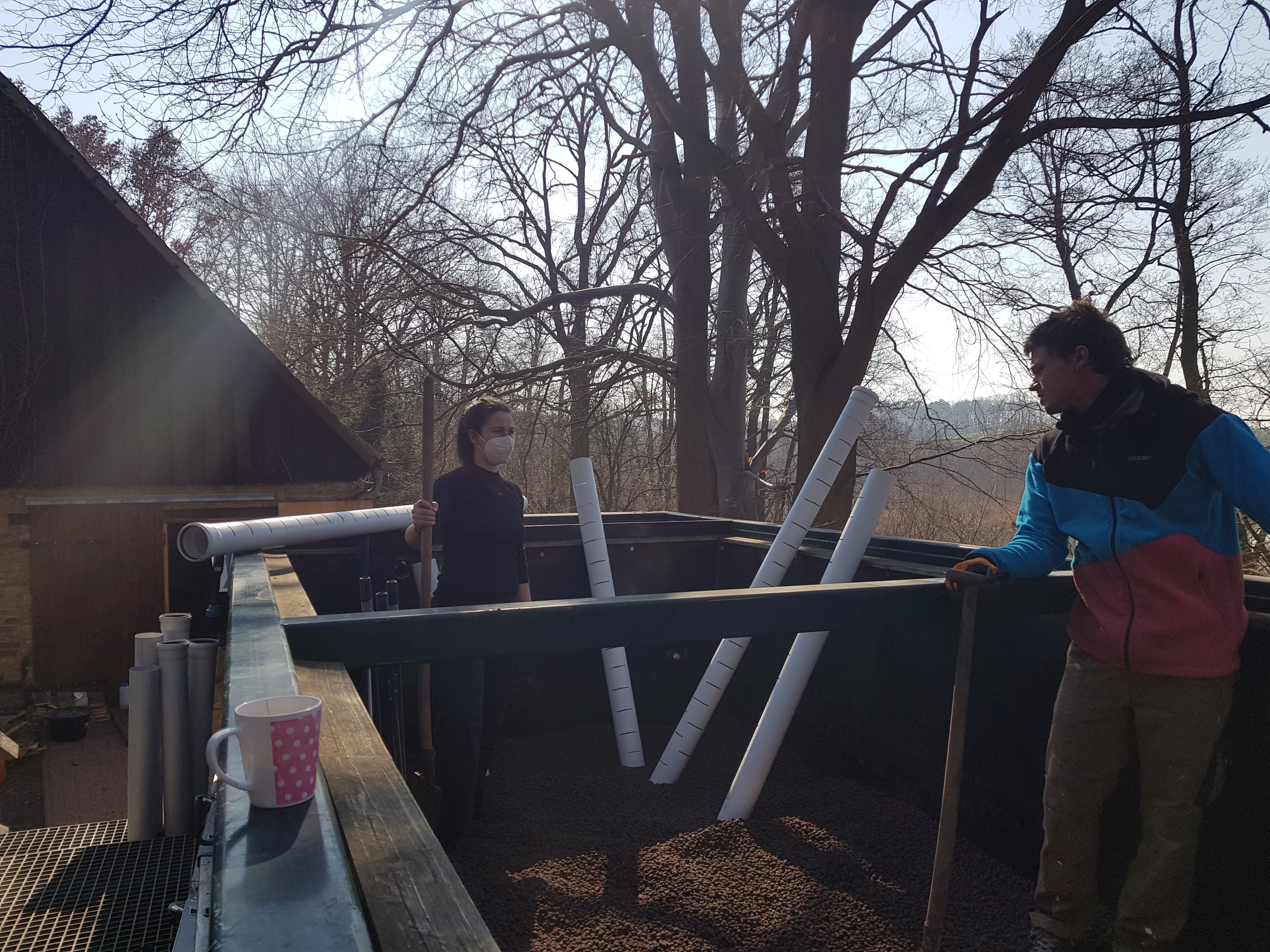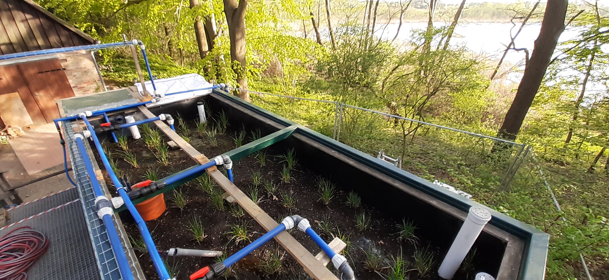 The project will focus on developing and testing a new constructed wetland which combines compactness and efficiency via its vertical multi-layer design and integrated aerobic sludge stabilization. The new process will be tested on Lake Parstein on the Pehlitzwerder peninsula (UNESCO biosphere reserve Schorfheide-Chorin). At the seasonally operated campsite on the lake, deliberate overloading of the constructed wetland during the summer will be studied to determine the appropriate load limits and necessary regeneration times during the winter. The campsite’s location in the nature reserve requires the treated wastewater to meet very high discharge quality standards: bathing water quality should be achieved with a minimal spatial footprint. To do so, additional post-treatment will eliminate pathogens and anthropogenic trace substances such as pharmaceutical compounds. The reuse of the water for irrigation will also strengthen the resilience of forest and woodland areas against longer periods of drought. To meet these multifaceted requirements, the performance of the experimental wetland and the purification process will be continuously optimized.